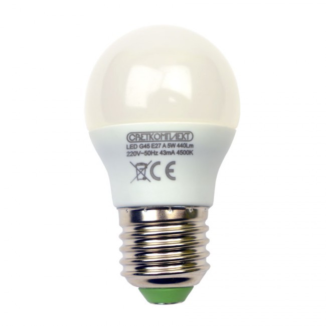 Лампа светодиодная LED G45 E27 A 5W 4500K