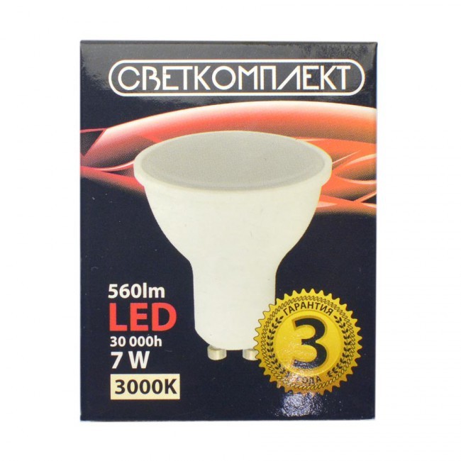 Лампа светодиодная LED GU10 E 7W 3000K 220V