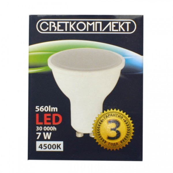 Лампа светодиодная LED GU10 E 7W 4500K 220V