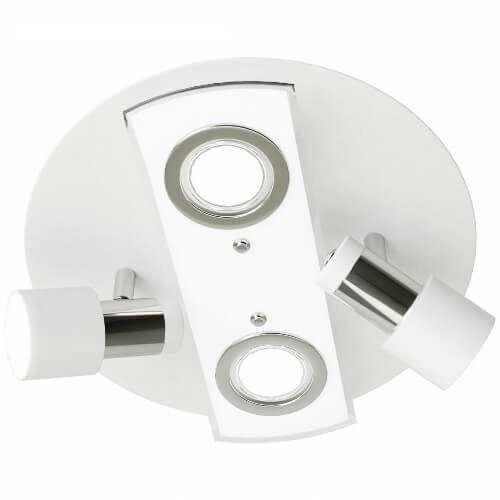 Люстра. Размеры: 29 / 29 см. Лампы: 4шт x 3Вт (GU10). 800лм. 3000K. Плафон: Стекло (glass) / Белый, прозрачный (white, clear). Основание: Сталь (steel) / Никель матовый, хром (nickel matt, chrome). Влагозащита: IP20. Лампа в комплекте: Светодиодная. Питание от сети 220в.