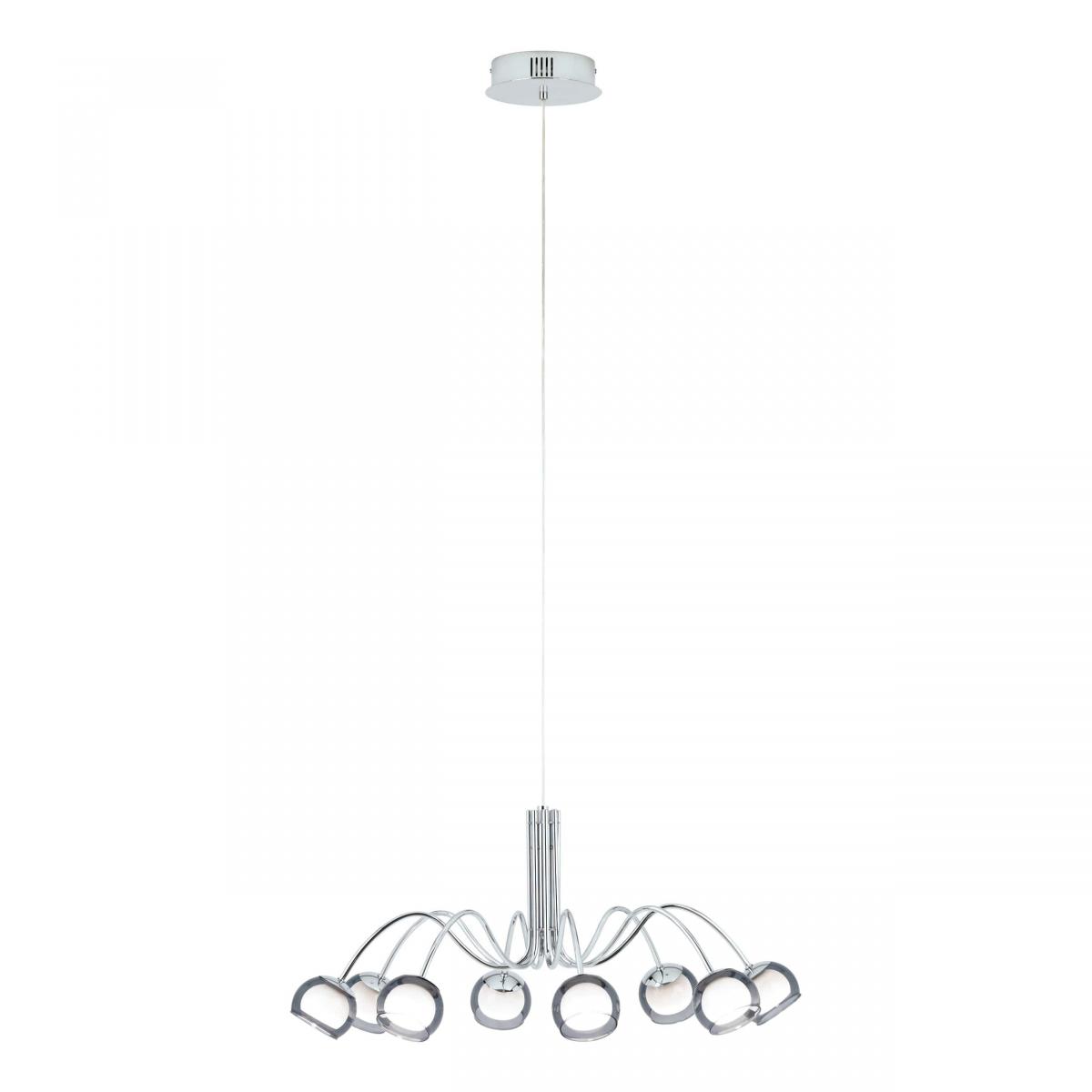 Люстра. Размеры: 150 / 80 см. Лампы: 8шт x 3,3Вт (LED). 2720лм. 3000K. Плафон: Стекло (glass) / Прозрачный, белый (black-transparent, white). Основание: Сталь (steel) / Хром (chrome). Влагозащита: IP20. Лампа в комплекте: LED-модуль. Питание от сети 220в.