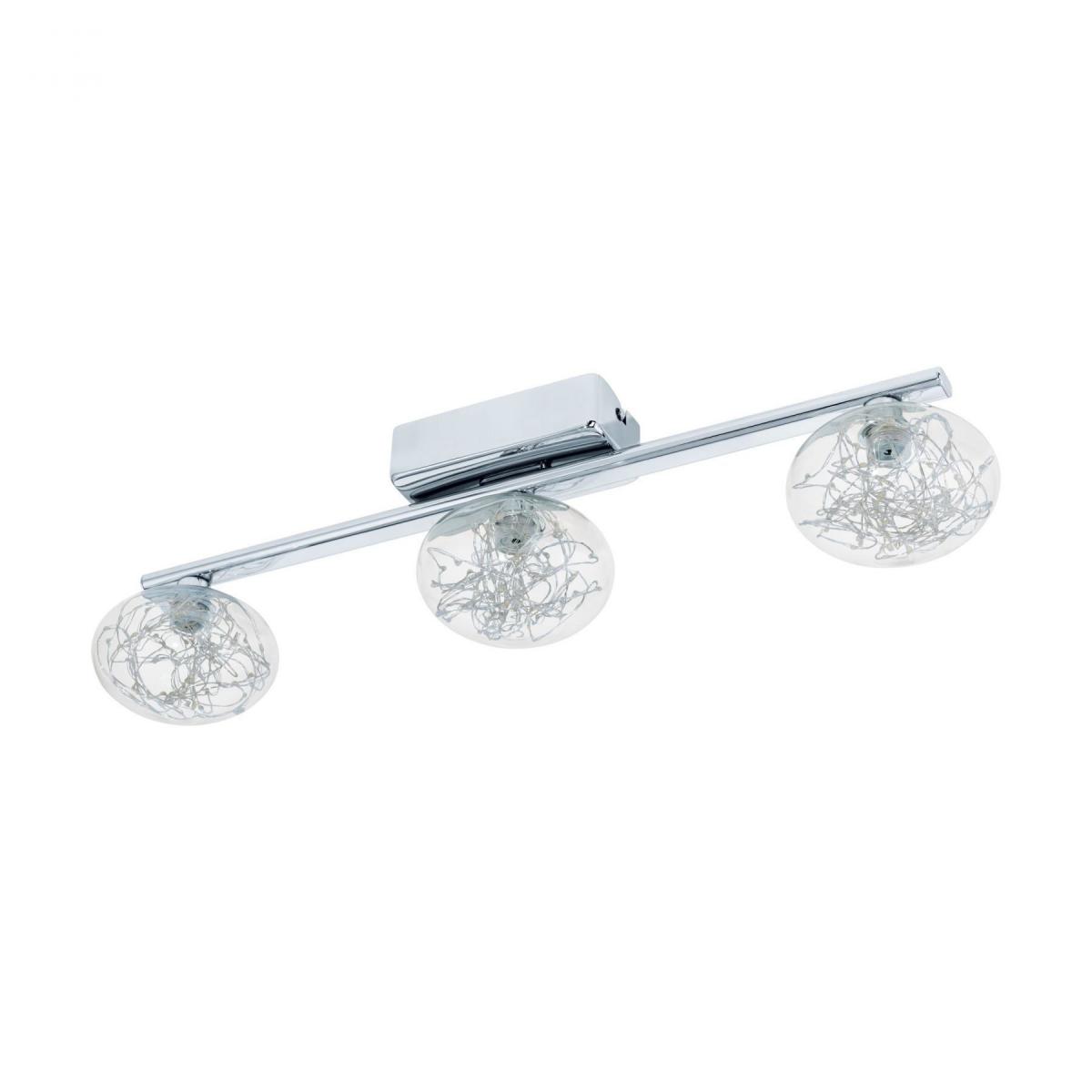 Люстра. Размеры: 15 / 56 / 12 см. Лампы: 3шт x 5Вт (LED). 1080лм. 3000K. Плафон: Стекло (glass) / Прозрачный (clear). Основание: Сталь (steel) / Хром (chrome). Влагозащита: IP20. Лампа в комплекте: LED-модуль. Питание от сети 220в.
