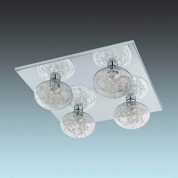 Люстра. Размеры: 13 / 37 / 37 см. Лампы: 4шт x 5Вт (LED). 1440лм. 3000K. Плафон: Стекло (glass) / Прозрачный (clear). Основание: Сталь (steel) / Хром (chrome). Влагозащита: IP20. Лампа в комплекте: LED-модуль. Питание от сети 220в.