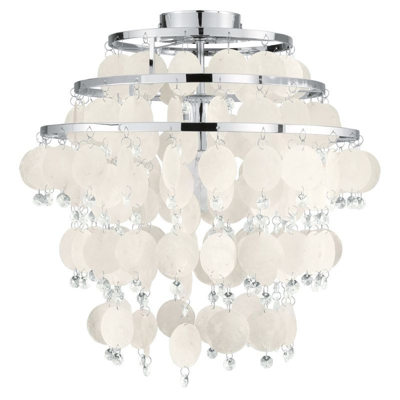 Люстра Eglo 90221 Chipsy – прекрасный осветительный прибор для внутреннего использования, изготовленный компанией Eglo (Австрия). Гарантийный срок составляет 1 год. Модель можно найти в каталоге Eglo Interior Lighting 2015-2016 в разделе Lighting Families на странице 119. Светильники серии Chipsy станут отличным дизайнерским акцентом в интерьере.Люстра Eglo 90221 Chipsy – осветительный прибор, в основании которого используется сталь, в плафоне – ракушка, хрусталь, а в декоративных элементах – ракушка, хрусталь. Цвет основания хром отлично гармонирует с оттенком перламутровый, прозрачный, в котором выполнен плафон. Композицию завершают декоративные элементы, выполненные в цвете перламутровый, прозрачный.Люстра Eglo 90221 Chipsy имеет такие габариты: высота – 39,5см, диаметр – 38см.