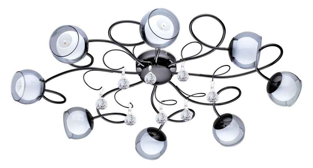 Люстра. Размеры: 16 / 85 см. Лампы: 8шт x 2,5Вт (G9). 1600лм. 3000K. Плафон: Стекло (glass) / Черно-прозрачный, белый (black-transparent, white). Основание: Сталь (steel) / Черный никель (nickel nero). Подвески: Стекло / Прозрачный. Влагозащита: IP20. Лампа в комплекте: Светодиодная. Питание от сети 220в.