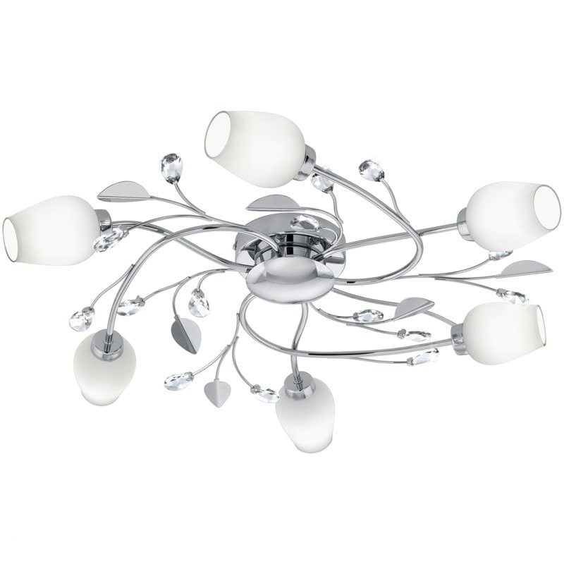Люстра. Размеры: 10 / 63 см. Лампы: 6шт x 2,5Вт (G9). 1200лм. 3000K. Плафон: Матовое стекло (satinated glass) / Белый (white). Основание: Сталь (steel) / Хром (chrome). Влагозащита: IP20. Лампа в комплекте: Светодиодная. Питание от сети 220в.