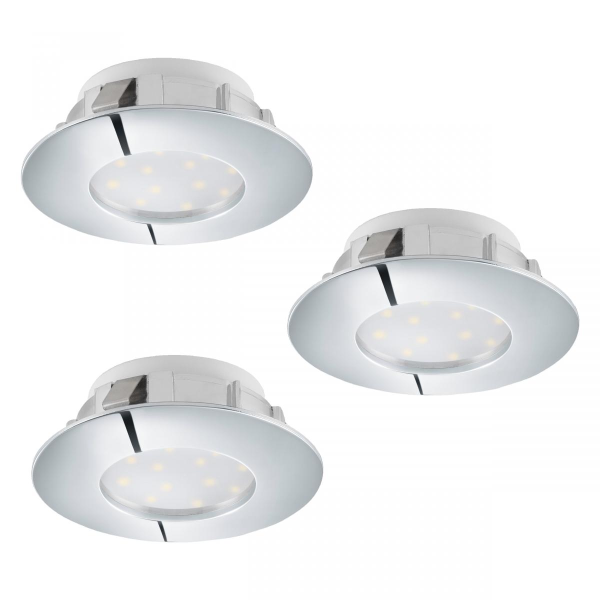 Точечный светильник Eglo 95808 Pineda (набор из 3шт) – прекрасный осветительный прибор для внутреннего использования, изготовленный компанией Eglo (Австрия). Комплект состоит из 3 осветительных приборов, гарантийный срок составляет 1 год. Модель можно найти в каталоге Eglo Interior Lighting 2016-2017 в разделе Recesed & Surface-Mounted Luminaires на странице 768. Светильники серии Pineda станут отличным дизайнерским акцентом в интерьере.Точечный светильник Eglo 95808 Pineda (набор из 3шт) – осветительный прибор, в основании и плафоне которого используется пластик. Цвет основания хром отлично гармонирует с оттенком того же цвета, в котором выполнен плафон.Точечный светильник Eglo 95808 Pineda (набор из 3шт) имеет такие габариты: диаметр – 7,8см, глубина врезного отверстия – 3,5см, размер врезного отверстия – 6см.